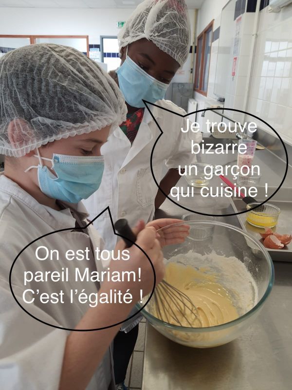 « Le jeudi 27 mai 2021 nous avons participé à un atelier de cuisine organisé par Laïla et Lucile. Madame ROBIN, professeur de cuisine des élèves de classe SEGPA, nous a accueilli pour réaliser une recette de gâteau.