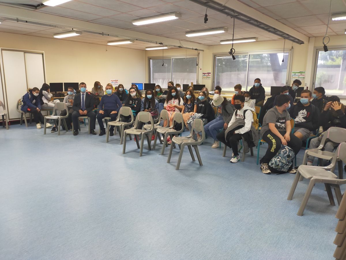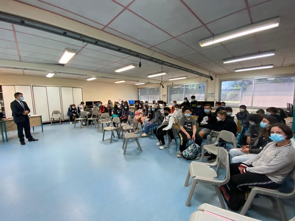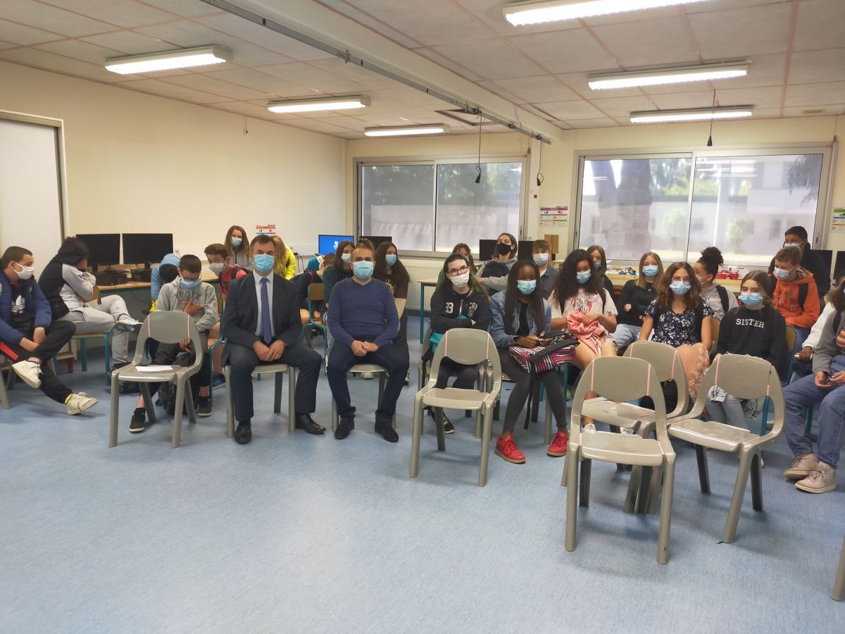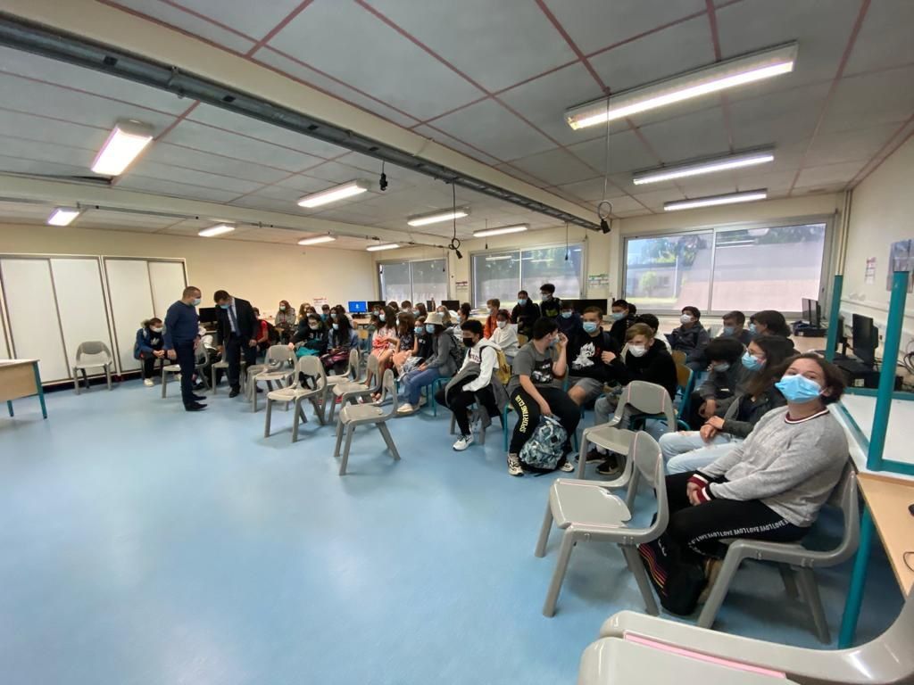 Les élèves de 4A et de 4F sont à nouveau rassemblés sous l’égide de leur professeur de Technologie, M. Kamal MEKKI-BERRADA, porteur du projet « aéronautique », pour assister à une nouvelle visio conférence sur le thème des métiers de l’aéronautique pour une visio conférence très particulière car cette fois le professionnel fait corps avec la passion sportive. En effet, après la Patrouille de France, ils vont découvrir la voltige aérienne, sport extrême où la France excelle et collectionne les trophées dont plusieurs titres de champion du monde et s’entretenir avec l’un de ces pilotes champions ainsi qu’avec l’Aspirant Cassandre, chargée de communication de l’équipe, un photographe, et un des mécaniciens. Didier TEYSSANDIER, commandant de bord d’Air France, et parrain du projet, est venu se joindre aux élèves pour assister à cet entretien.
