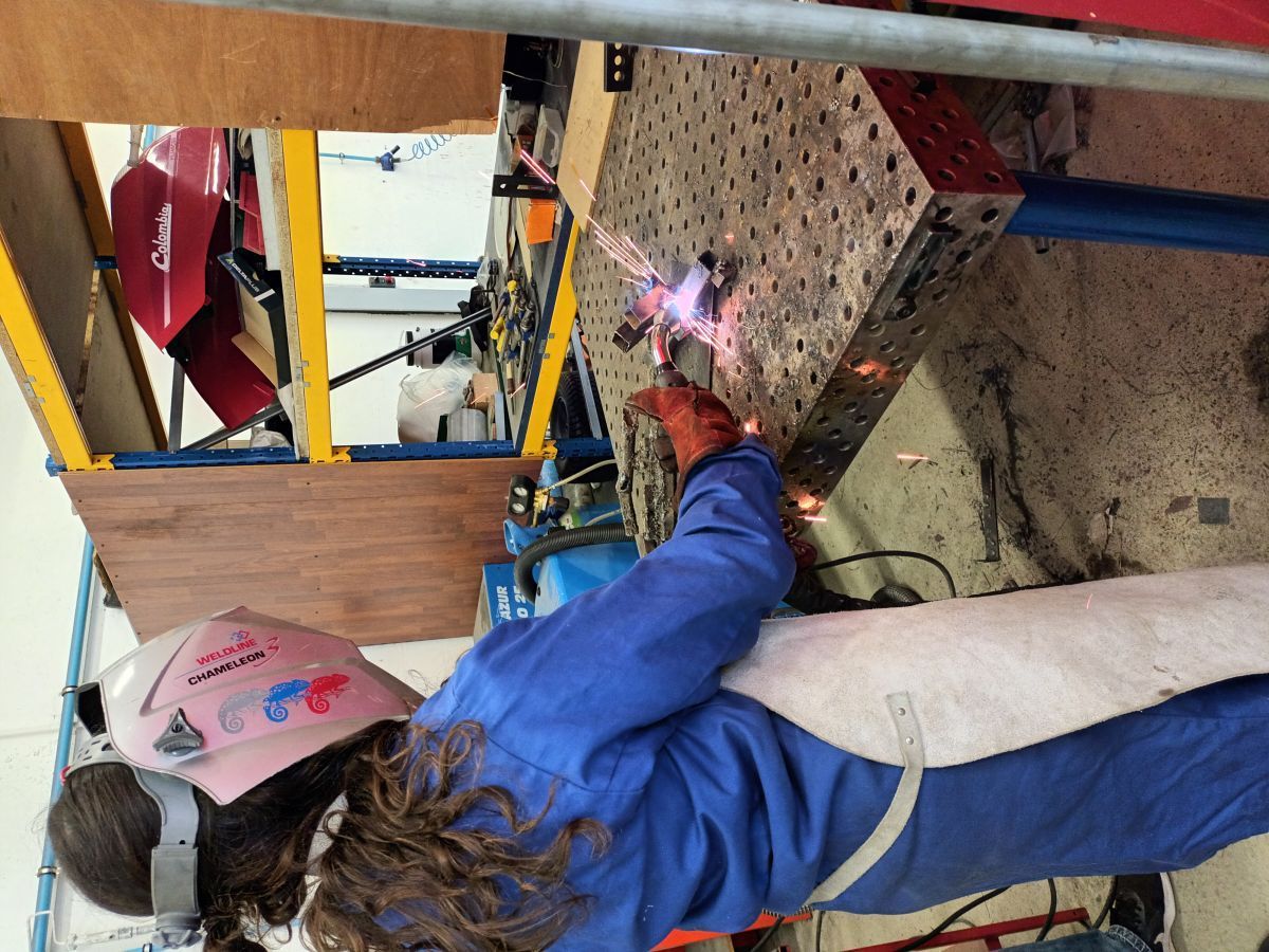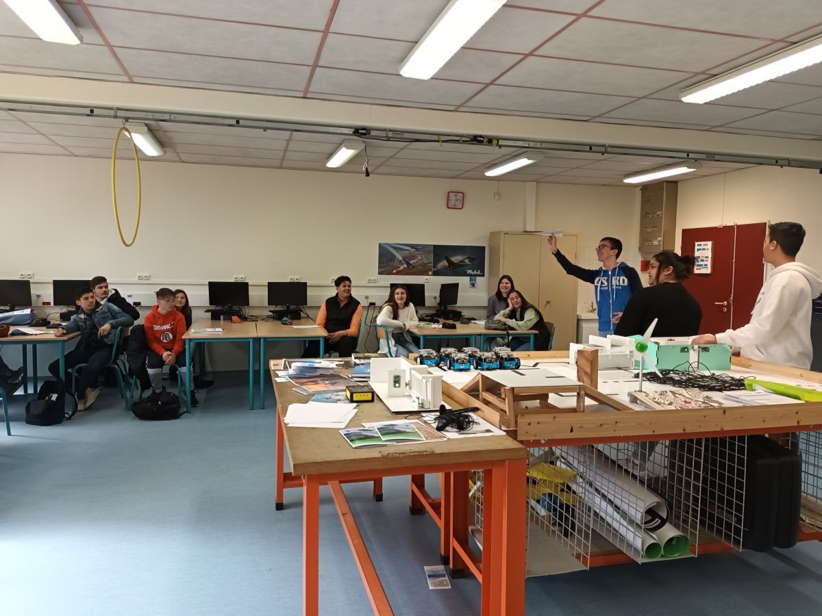 Les élèves candidats d'Elie Faure ont pris très au sérieux leur participation à ce prix et dès qu'ils ont été inscrits, ils se sont pleinement investis dans la préparation aux épreuves. Wali constate que "le règlement est très difficile, mais nous ferons au mieux". Les rôles ont été vite réparti, avec efficacité, en fonction des compétences de chacun, dans cette équipe où règne la parité. Les filles, Aylin et Milène, se sont attelées à la lourde tâche d'écrire une saynète pour l'épreuve de présentation d'un métier sous la houlette de Mme Virginie BASTITA, professeur documentaliste. M. Bernard LE BOT, nouveau professeur de technologie, très récemment en poste au collège Elie Faure, a entrepris de rédiger avec les garçons la fiche technique de l'origavion. Soenn est le spécialiste de la conception et de la fabrication de l'avion, Wali est le lanceur, Aylin contrôle la qualité de chaque étape de fabrication et assure la maintenance après chaque vol. Les élèves des ateliers de la SEGPA ont également été mis à contribution, ceux de l'atelier HAS ont crée les T-shirts de l'équipe à l'emblème du logo du projet et ceux de l'atelier mécanique vont fournir les outils et accessoires qui rendront la saynète plus crédible. D’ailleurs, Milène, qui prend très au sérieux son rôle de chaudronnière, a d’ores et déjà pris ses premiers cours de soudure sous la direction de M. BESSE, professeur en charge de l’atelier mécanique.