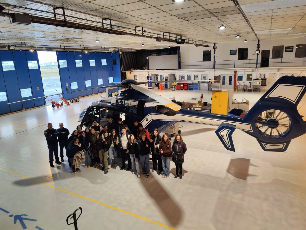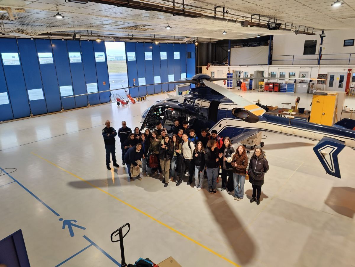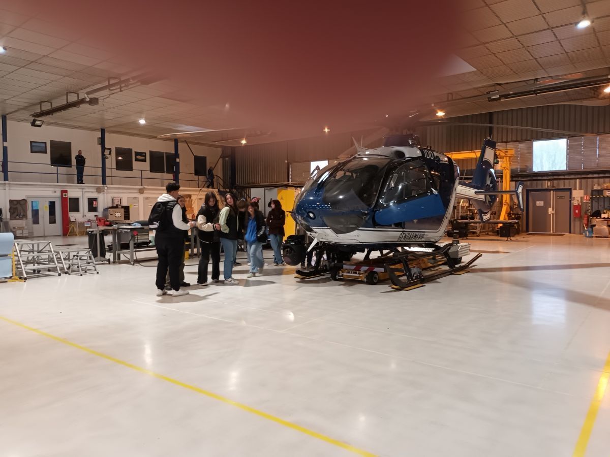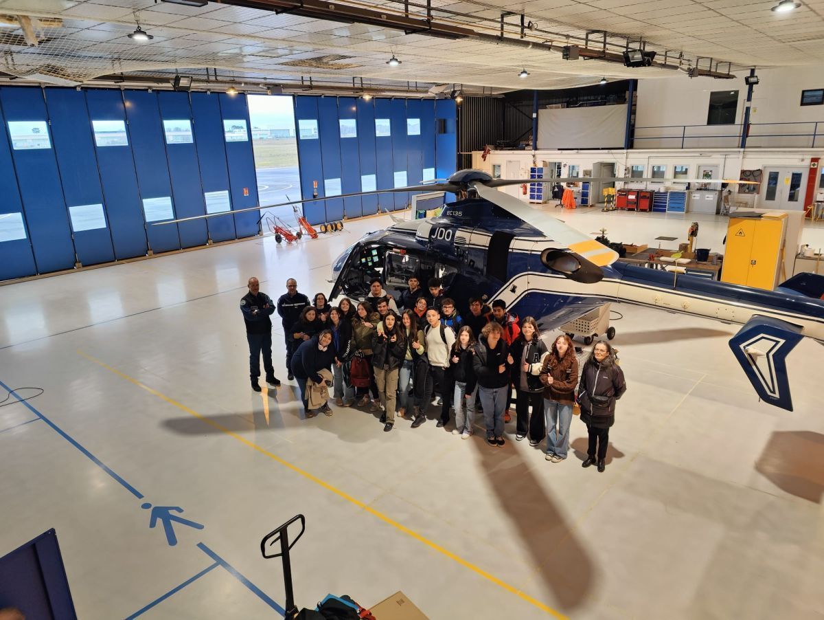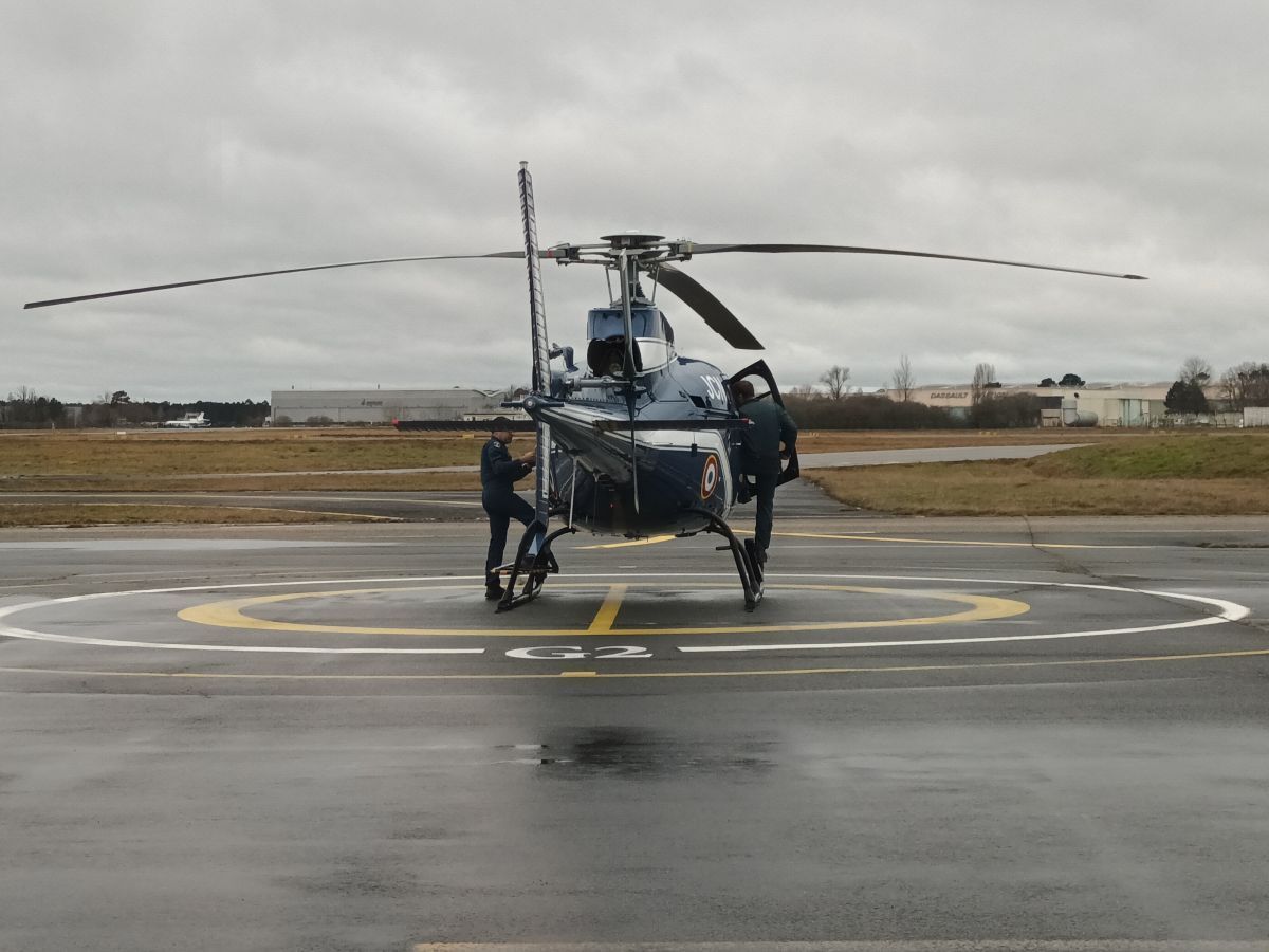Par cet après midi pluvieux de début mars, les élèves de 3ème de la classe à projet aéronautique et leurs accompagnateurs ont été chaleureusement accueillis par le lieutenant-colonel Frédéric et ses hommes à la base de la Section Aérienne de la Gendarmerie. Située sur l'aéroport de Bordeaux Mérignac, voisine de la Sécurité Civile, la Force Aérienne Gendarmerie Sud-Ouest couvre un large quart de la France depuis la côte basque jusqu'en Corrèze. Le but de cette visite était de faire découvrir les missions des unités aériennes de la Gendarmerie et les métiers qui la composent, ainsi que les deux hélicoptères de la section : l'EC 135, surnommé Choucas et l’Écureuil.