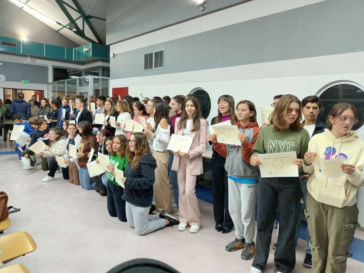 Patrick Broquet, Principal, ouvre la cérémonie en les remerciant de leur présence et les félicite chaleureusement de leur réussite. Ce soir, il va leur remettre le Diplôme National du Brevet, le Certificat de Formation Général pour les élèves de SEGPA, certains élèves de la filière générale ont obtenus les deux diplômes. Le Brevet d’Initiation Aéronautique n’étant pas obligatoire, il est remis aux diplômés concernés qui ont suivi l’an passé la formation spécifique dispensée par l’aéroclub foyen pour la première fois de son histoire, et dont un élève de 4ème est aussi l’heureux lauréat. Il a également bien insisté que les diplômes de même que l’ASSR2 sont uniques et doivent être conservés précieusement.