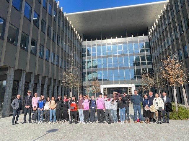 Puis la classe a rejoint le site voisin de Dassault Aviation où ils furent accueillis d’abord à l’auditorium pour une première conférence sur l’histoire de ce grand fleuron aéronautique français et de son fondateur, le capitaine d’industrie Marcel Dassault, ainsi que des divers modèles d’avions civils et militaires créés et construits par l’avionneur. Les collégiens furent ensuite pris en charge par Alain Garcia, Conseiller du PDG Eric Trappier, qui leur fit l’honneur de les guider lors de la visite des chaines de montage Rafale et Falcon. Très enthousiastes, les jeunes purent échanger avec lui sur ce qu’ils voyaient et ils étaient aussi contents d’afficher leur savoir aéronautique. Frédéric Lascourrèges, ancien pilote d’essai, a apporté son savoir-faire technique en complément des explications d’Alain Garcia. Les élèves eurent aussi la bonne surprise de retrouver le Colonel Richard Esnon, qui les avaient invités au meeting de St Jean de Luz en octobre dernier, celui-ci travaillant sur les projets Falcon. Au terme de la visite, Alain Garcia félicita chaleureusement les collégiens d’Elie Faure pour leur intérêt et leur implication, il précisa que le futur était entre leurs mains et qu’il ne fallait surtout pas qu’ils s’interdisent quoi que ce soit car les métiers de l’industrie aéronautique sont ouverts à tous les niveaux d’études : « c’est en 3ème que les jeunes réfléchissent à leur orientation. Leur présenter nos métiers concrètement, c’est leur ouvrir des horizons inconnus, afin de préparer leur avenir mais aussi celui de nos entreprises ».