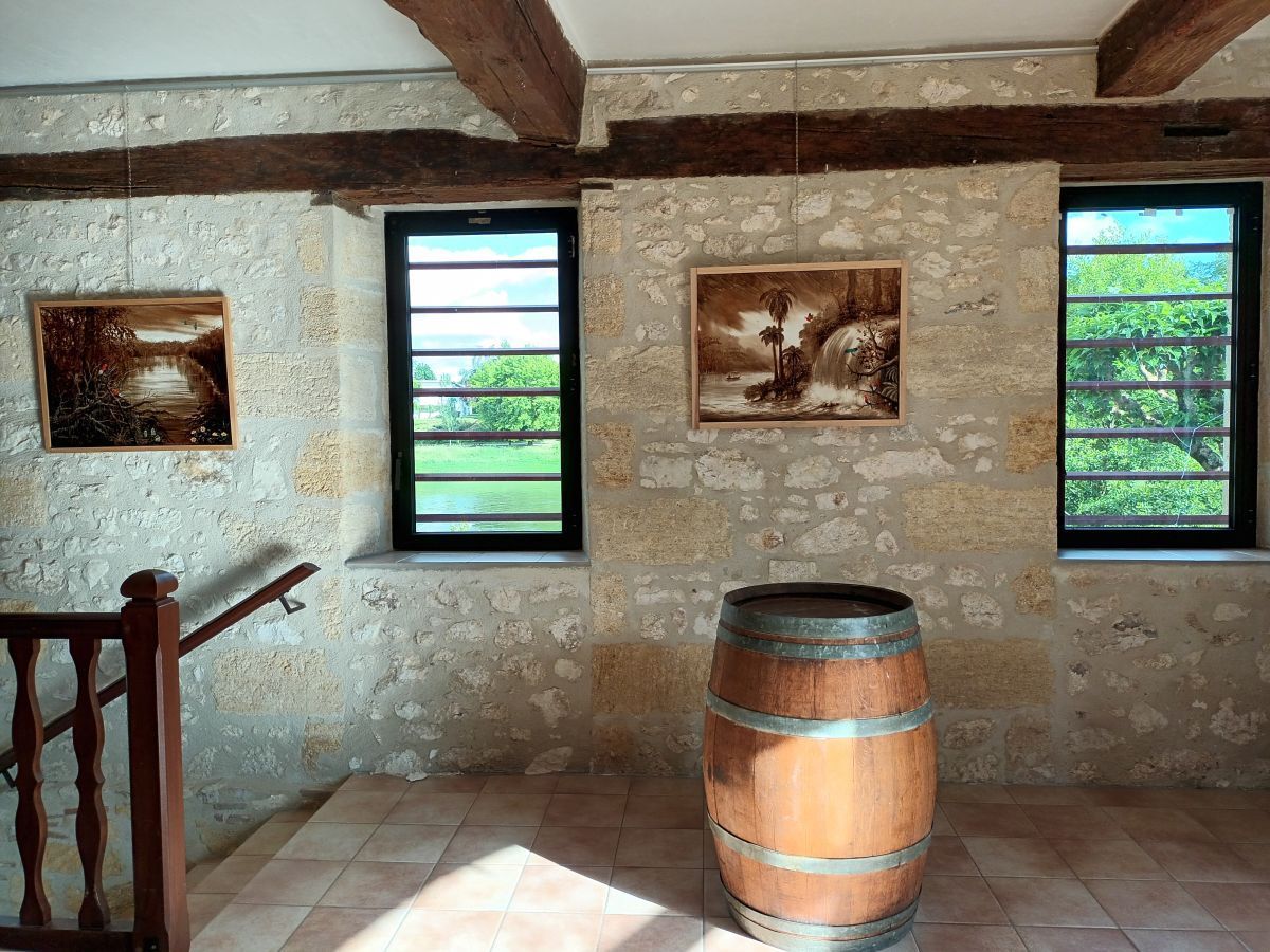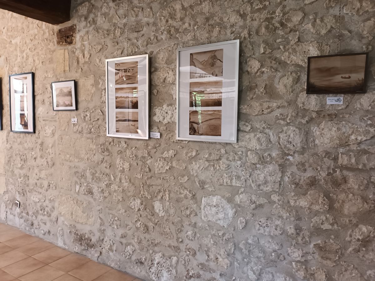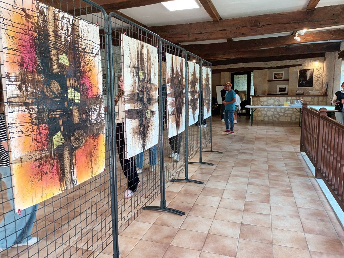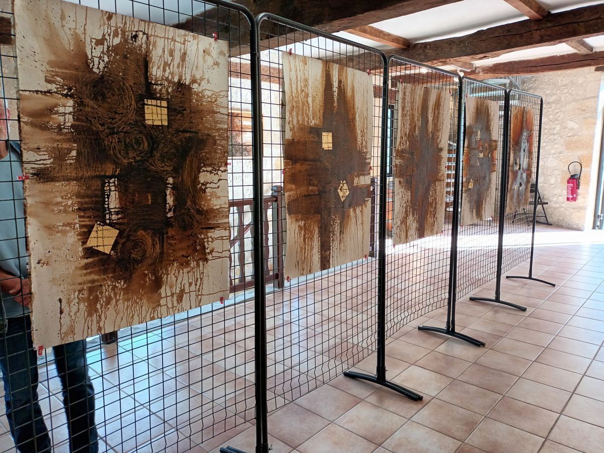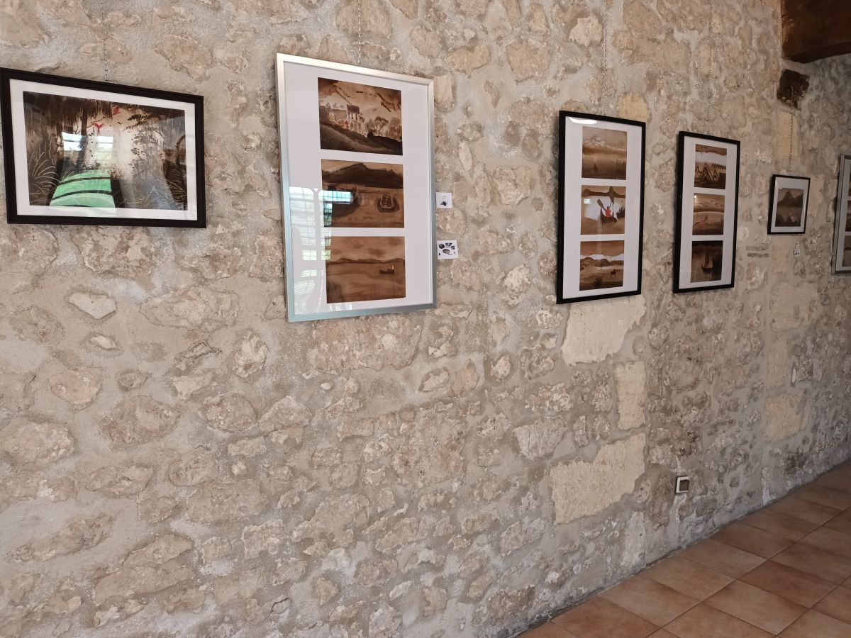 Cette exposition venait clore l’action pluridisciplinaire menée avec le peintre Sabino Puma Quispe, artiste péruvien, descendant des incas, qui peint au marc de café. Il a initié les élèves à son art, et à la technique très particulière qu’il utilise ainsi qu’à la langue quechua et à la culture inca. Les œuvres des élèves côtoyaient harmonieusement celles de l’artiste, idéalement mise en valeur par les pierres apparentes des murs de l’ancienne batellerie.