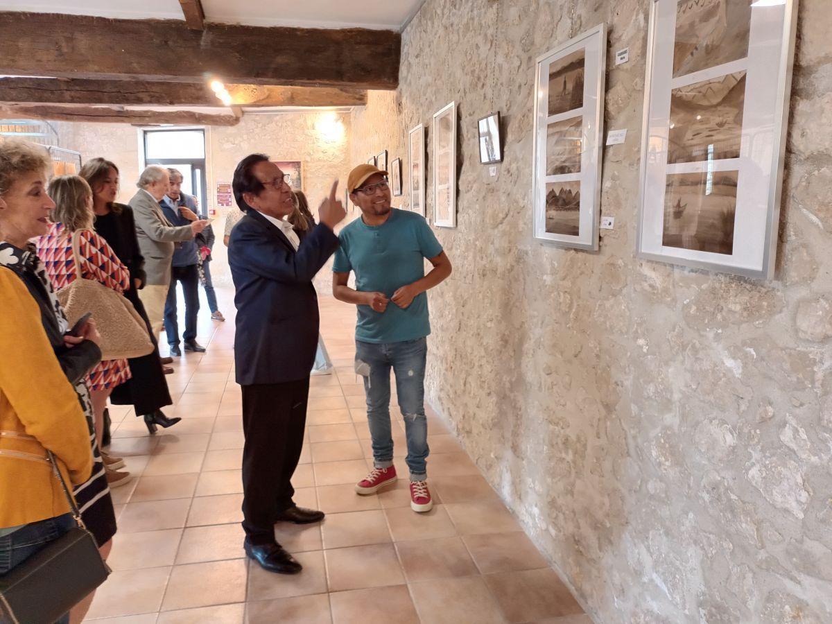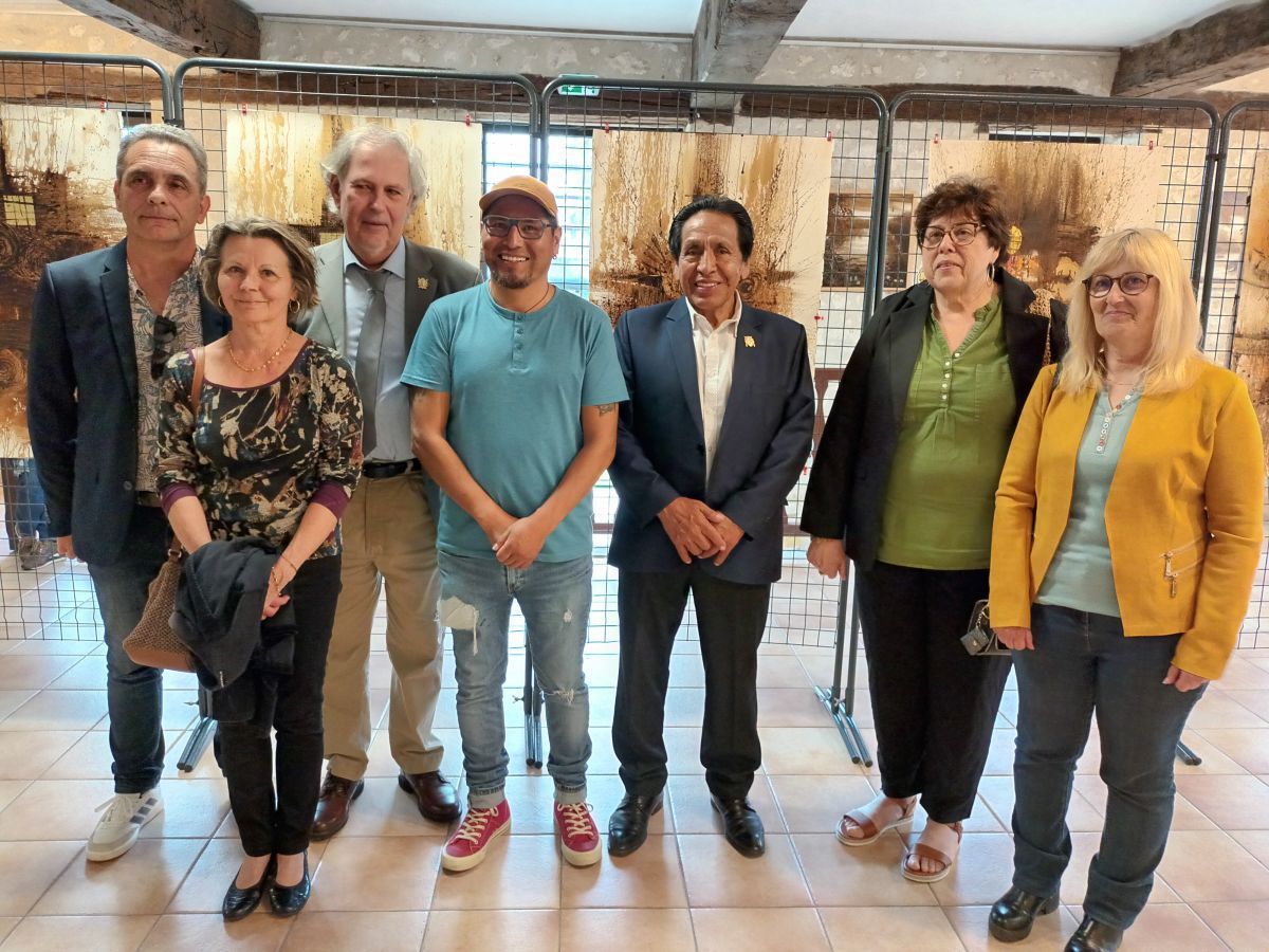 Le Consul, et les deux enseignants d’espagnol latino-américains de sa délégation, ont particulièrement apprécié la qualité des tableaux des élèves. Les élus de Port Ste Foy, Ste Foy la Grande et Pineuilh qui étaient présents également. Juan Vilches a souligné à plusieurs reprises « être très heureusement surpris de l’investissement des élèves dans ce projet et de leur capacité à restituer les compétences acquises en si peu de temps pour atteindre une si belle réussite », il a également dit « être très heureux d’avoir été invité et d’avoir fait la connaissance de Sabino et découvert son talent ». Il a également fait part de son souhait que celui-ci participe l’an prochain à la semaine de l’Amérique Latine organisée chaque année à Bordeaux dans le cadre du jumelage de la ville avec Lima. Sabino exposerait ses tableaux et ceux des élèves à la Maison du Pérou. Une belle perspective très motivante pour les élèves, Sabino Puma, et Alain Peres, leur professeur, qui va reconduire ce projet l’an prochain, au vu de la brillante réussite obtenue.