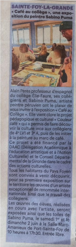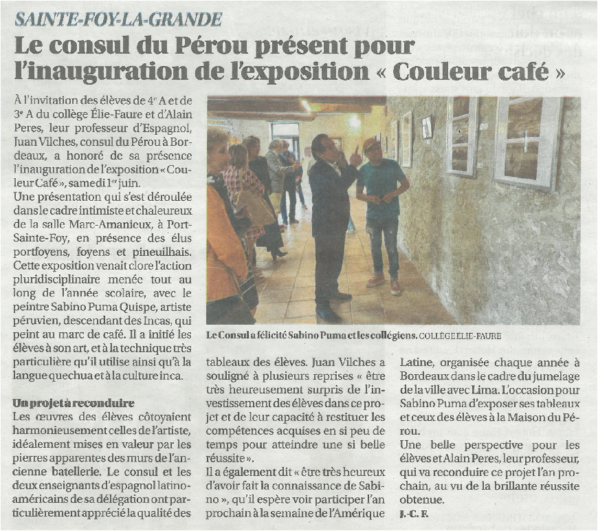 ARTICLE SUD OUEST EXPO COULEUR CAFE 29/05/2024