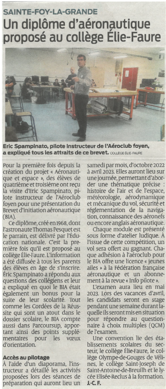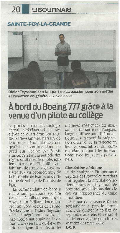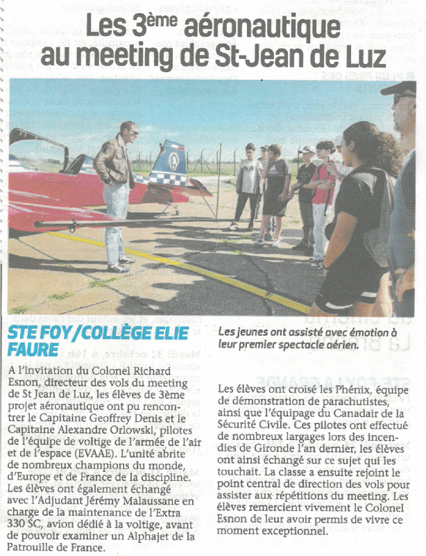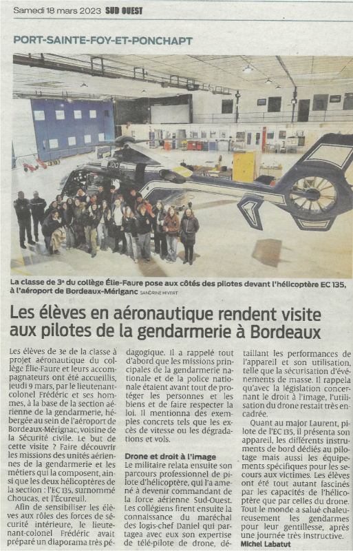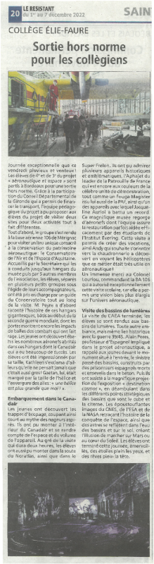 ARTICLE SUD OUEST 33 VISITE AERODROME