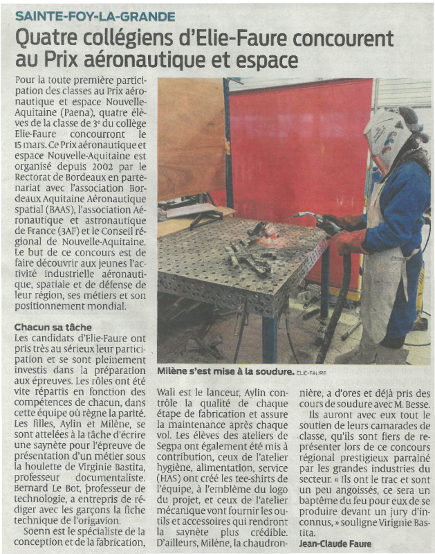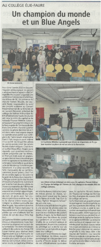 article Sud Ouest 33 11/10/22 ADJ CHEF LEJAS