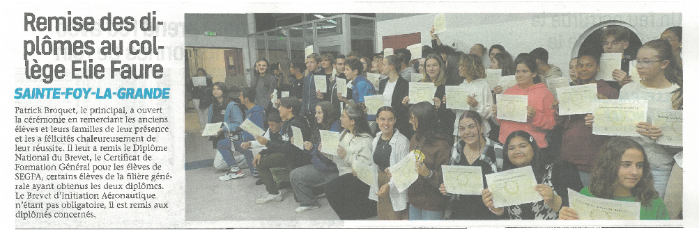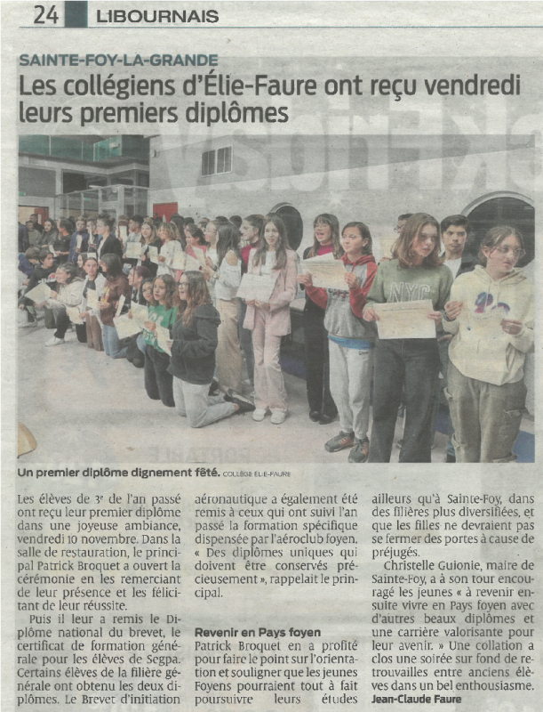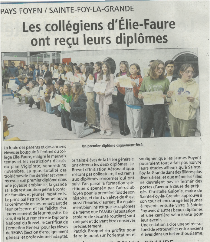 ARTICLE LE DEMOCRATE REMISE DES DIPLOMES 16 11 23