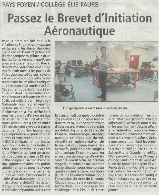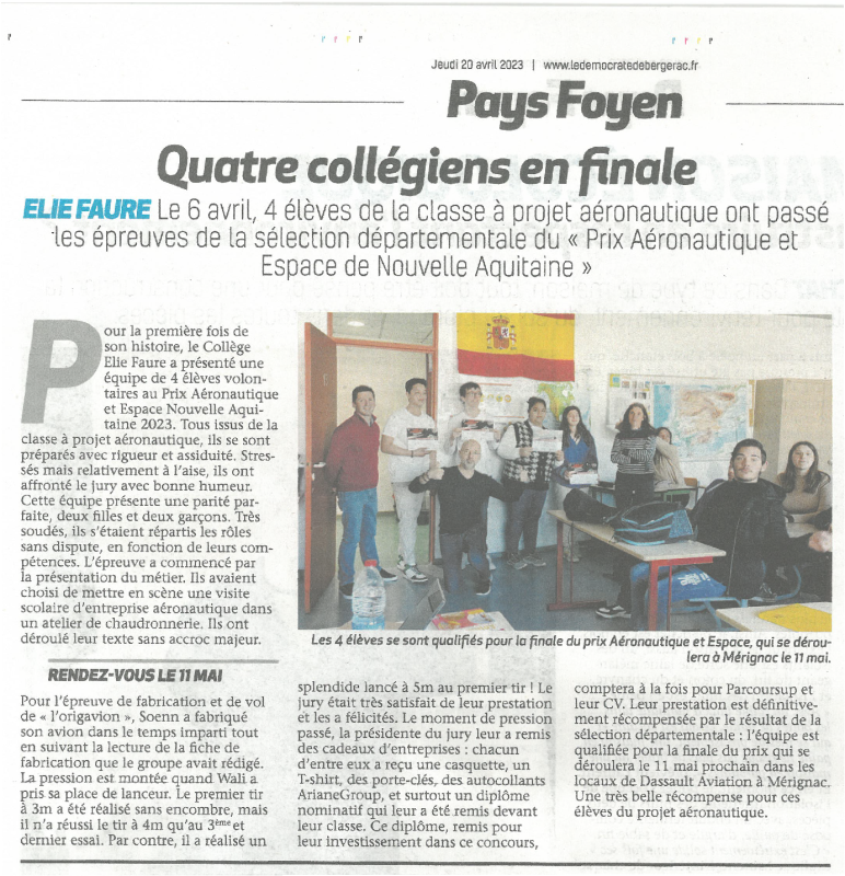 ARTICLE LE DEMOCRATE AERODROME 16 11 2023