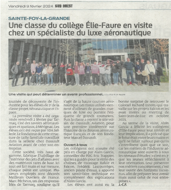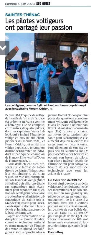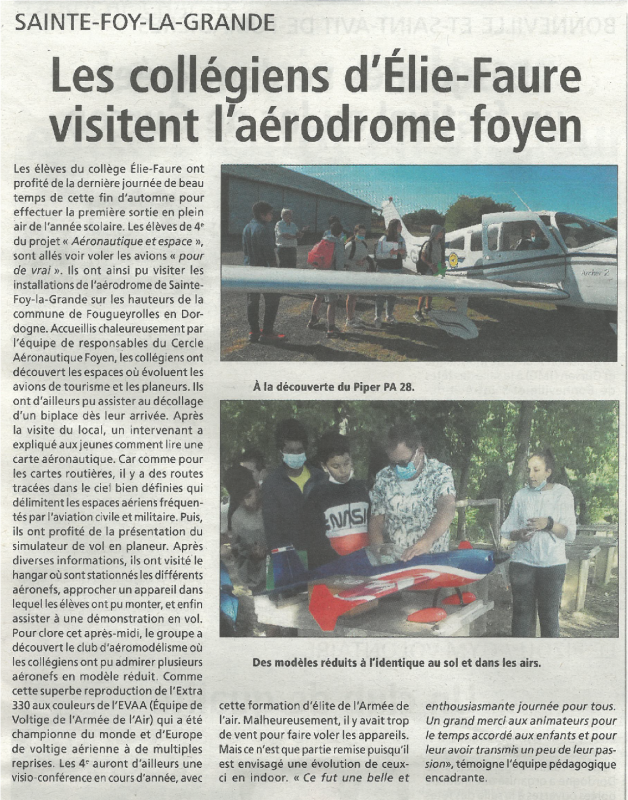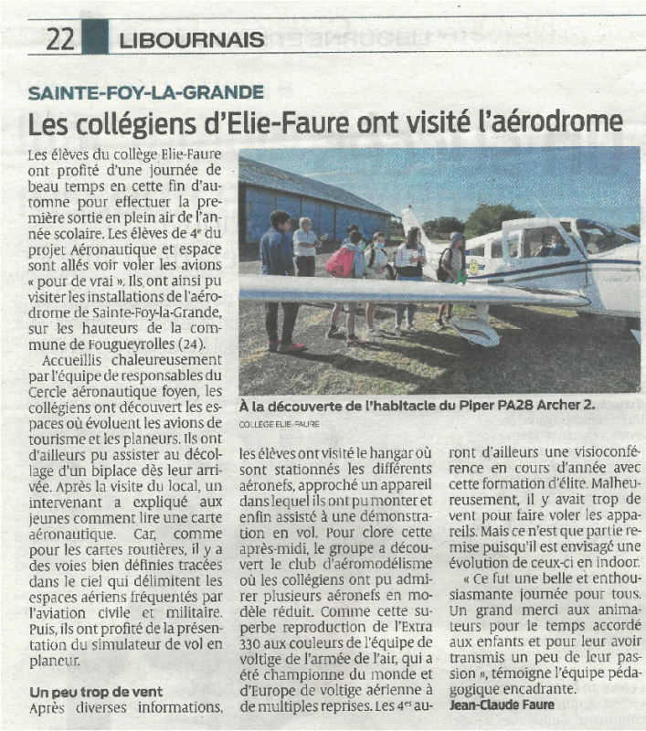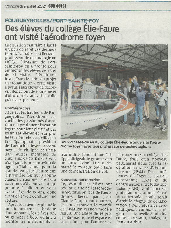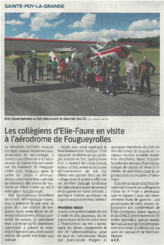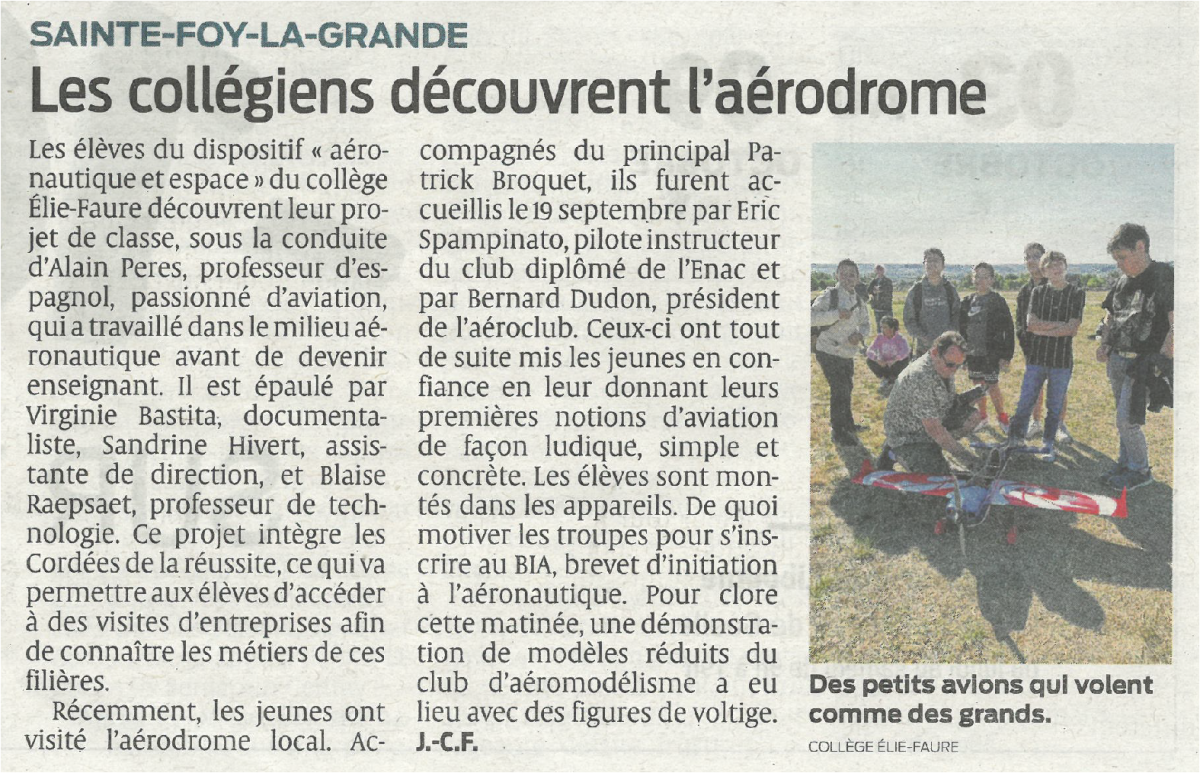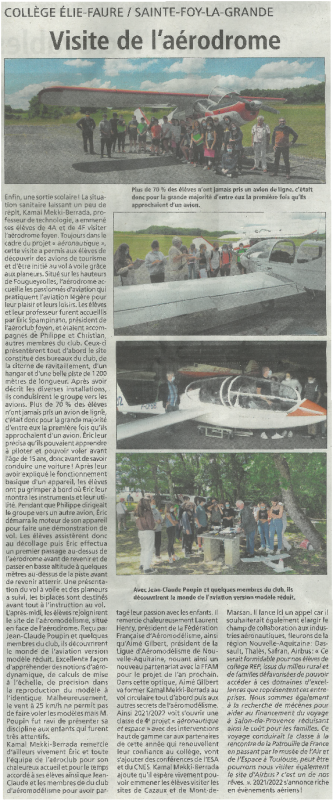 ARTICLE SUD OUEST 24 VISITE AERODROME