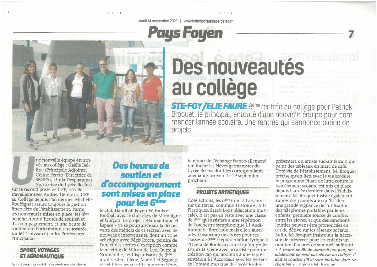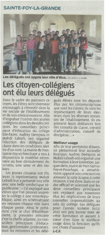 Collège élie Faure, Port Sainte Foy BP 115, 33220 Sainte-Foy-la-Grande