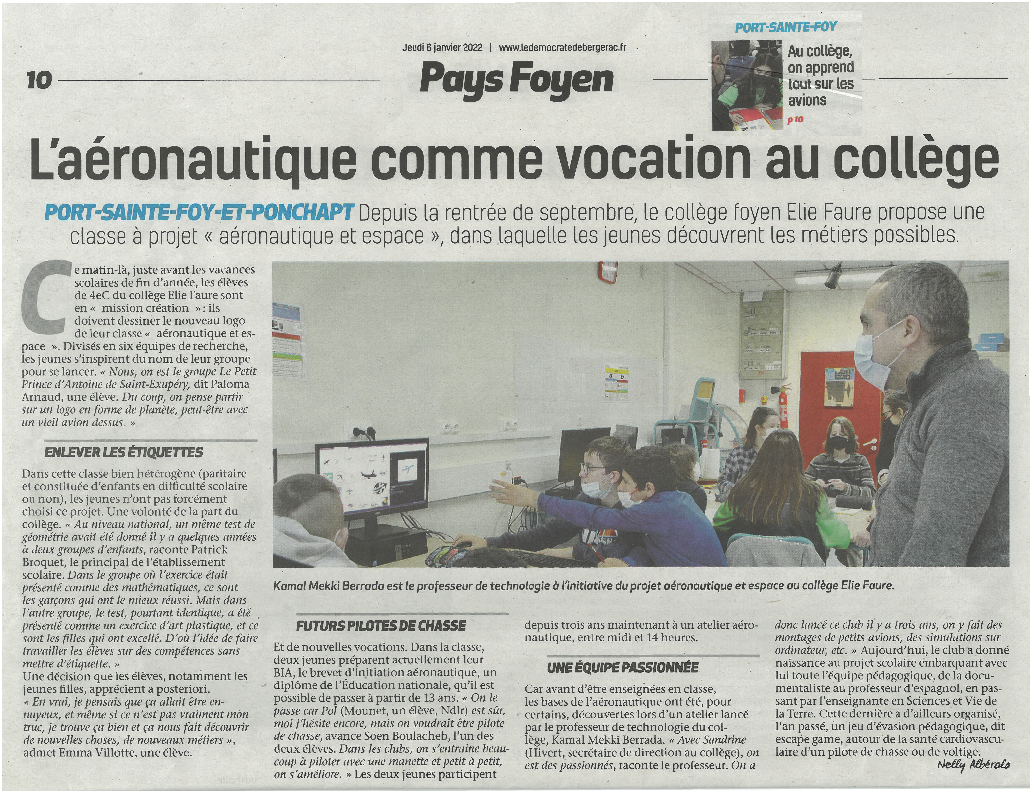 LE DEMOCRATE 06/01/22 PROJET AERONAUTIQUE