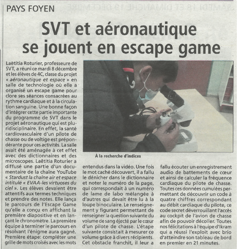 ARTICLE ESCAPE GAME SVT LE RESISTANT 16/12/21