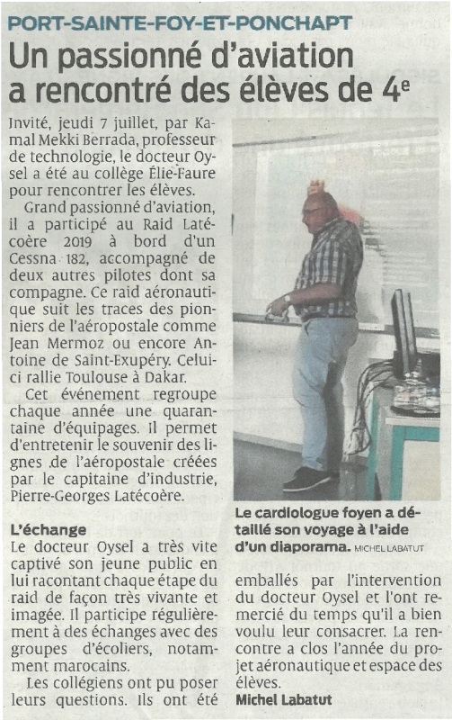 ARTICLE SUD OUEST 24 DR OYSEL 29/07/2022
