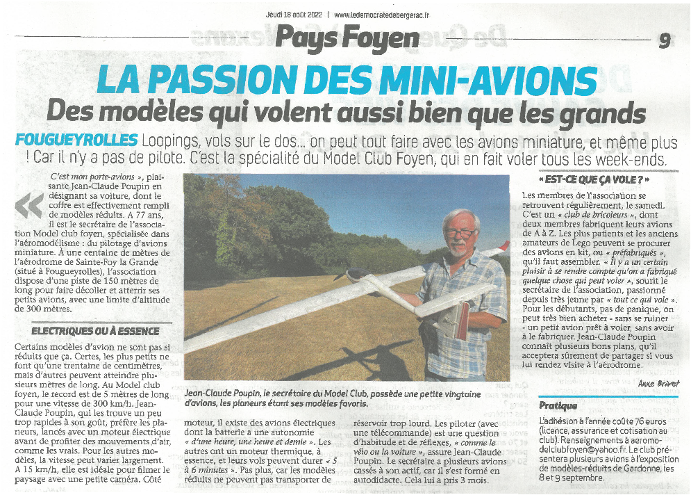 AEROMODELISME ARTICLE LE DEMOCRATE 18082022