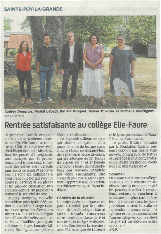 ARTICLE DE RENTREE 2022 SUD OUEST GIRONDE